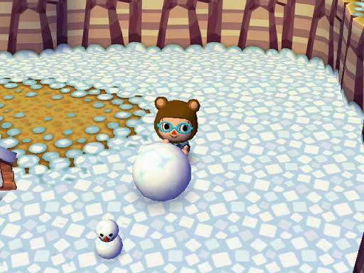 大きくなり過ぎたら、雪のない地面を転がせば小さくなります。