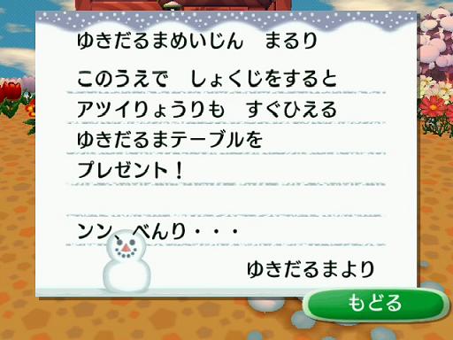 後日、お手紙が送られてきてランダムに何かのゆきだるま家具をくれます。